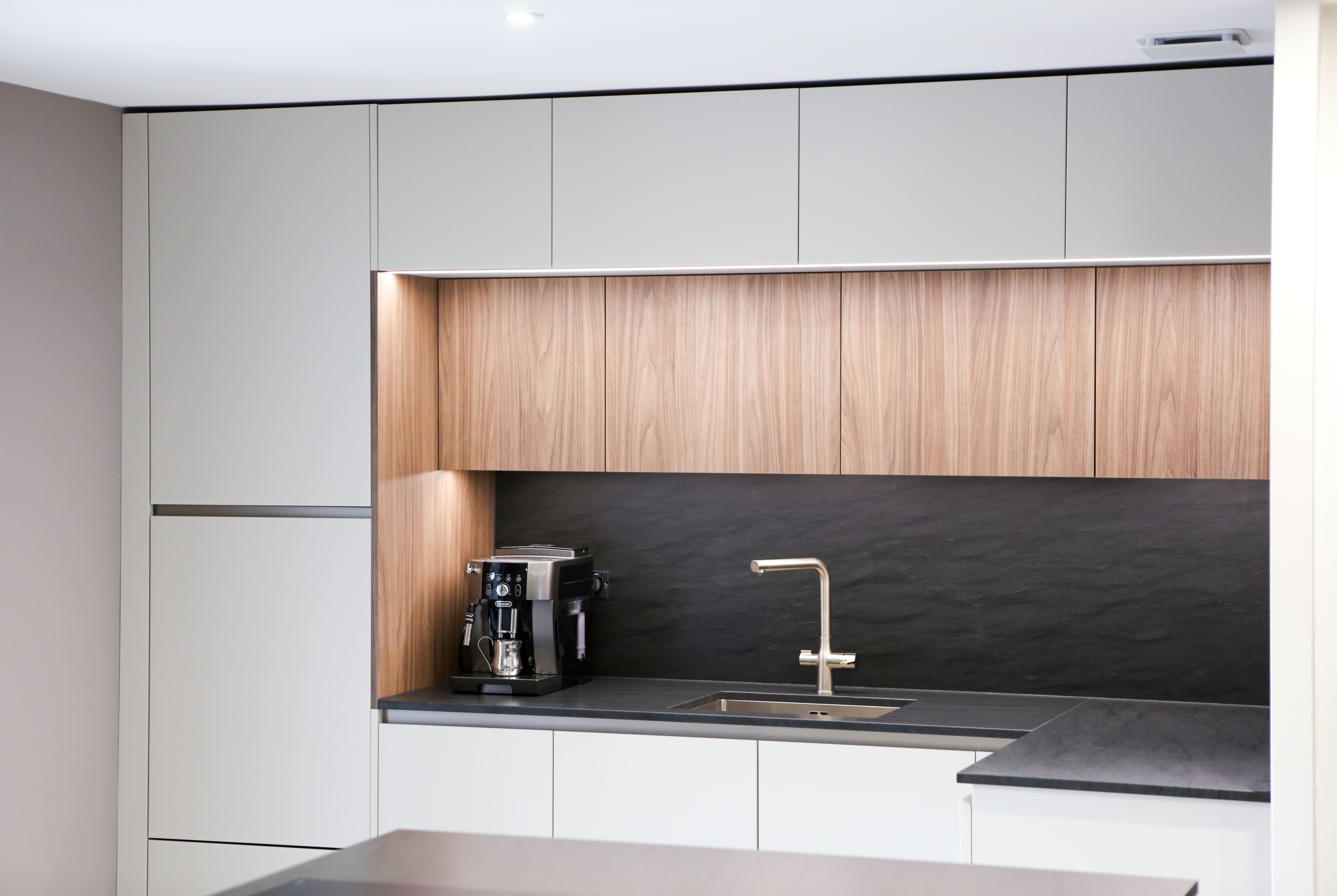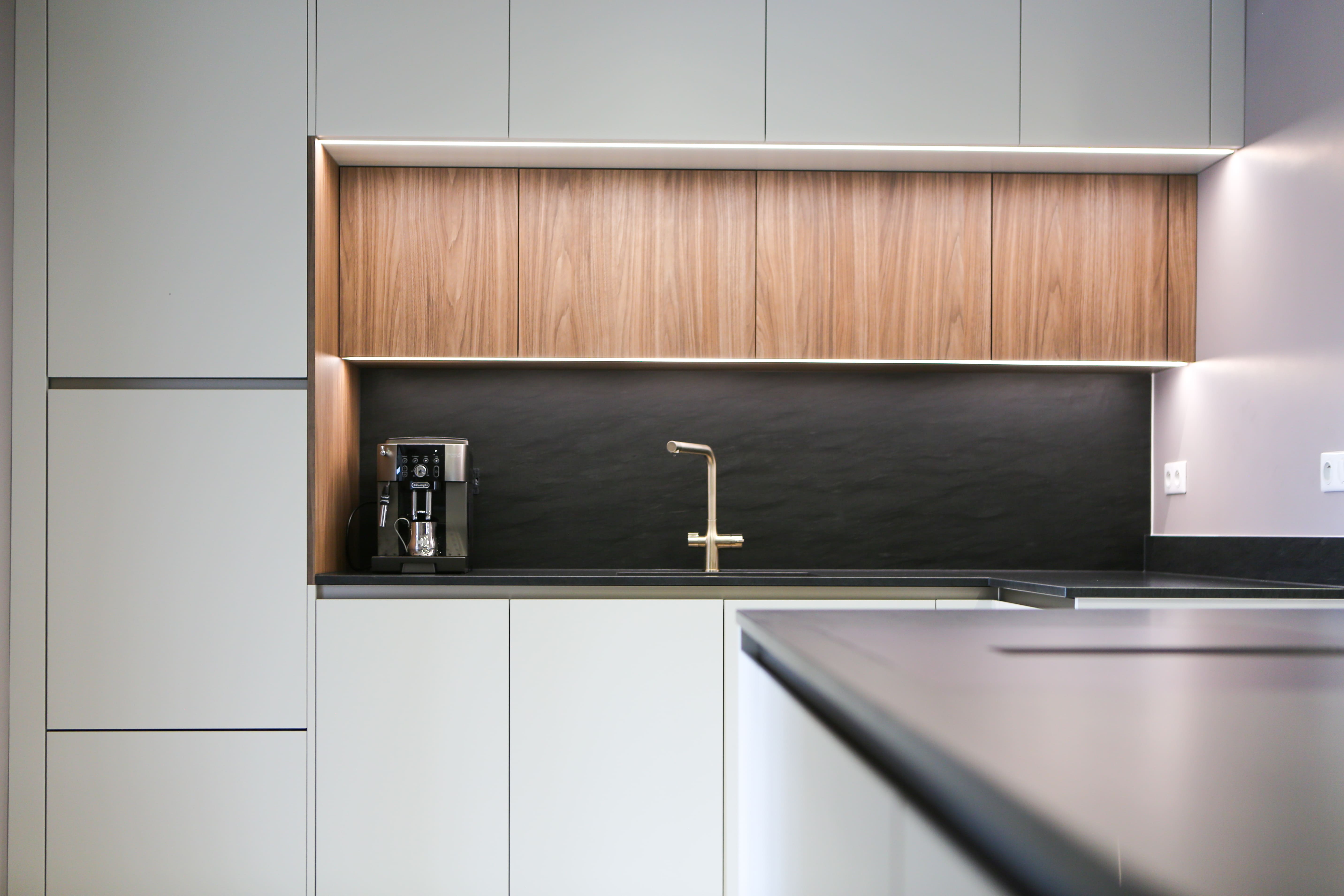 Cuisine en laque avec des finitions haut de gamme. Plan de travail sélectionné directement en Allemagne chez notre fournisseur par nos clients 👉 @dinger_stone