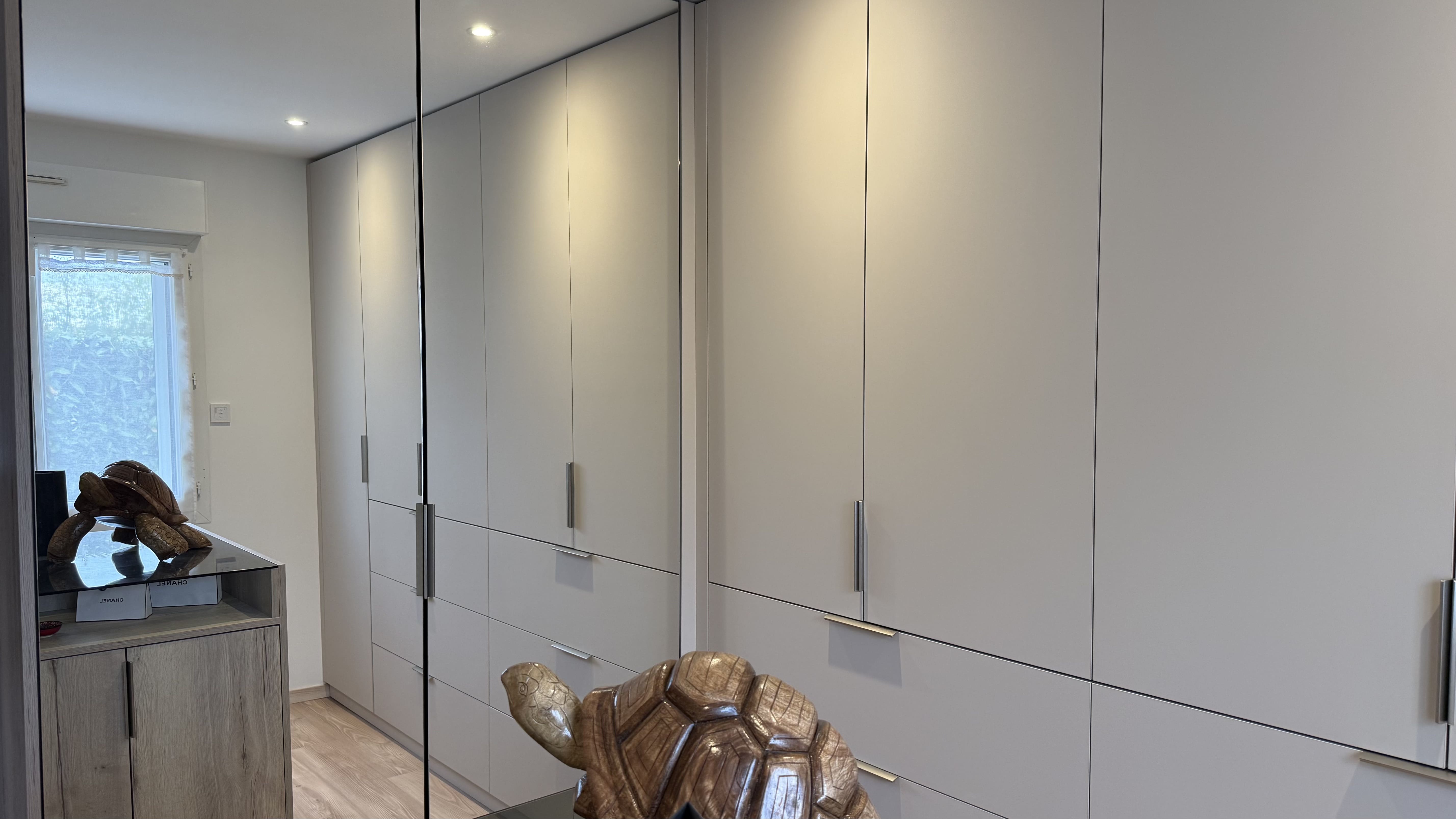 Réalisation complète d’un dressing sur mesure, fabriqué et posé par notre équipe.